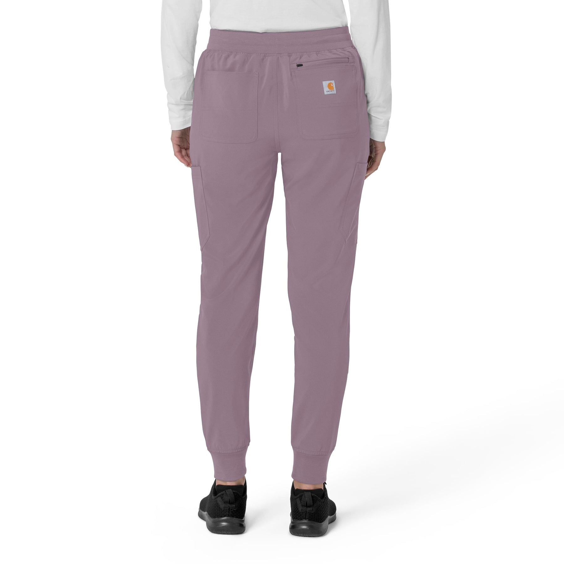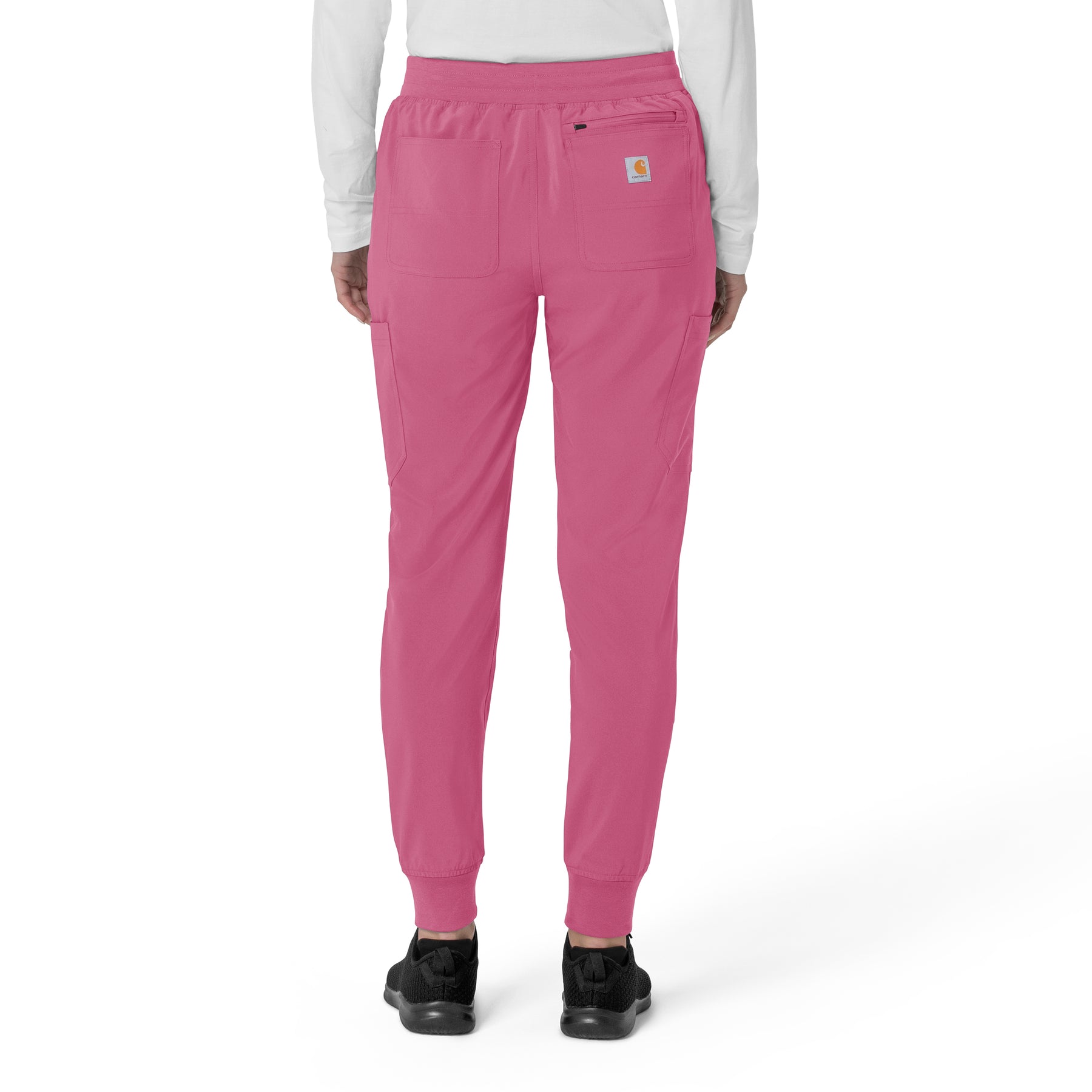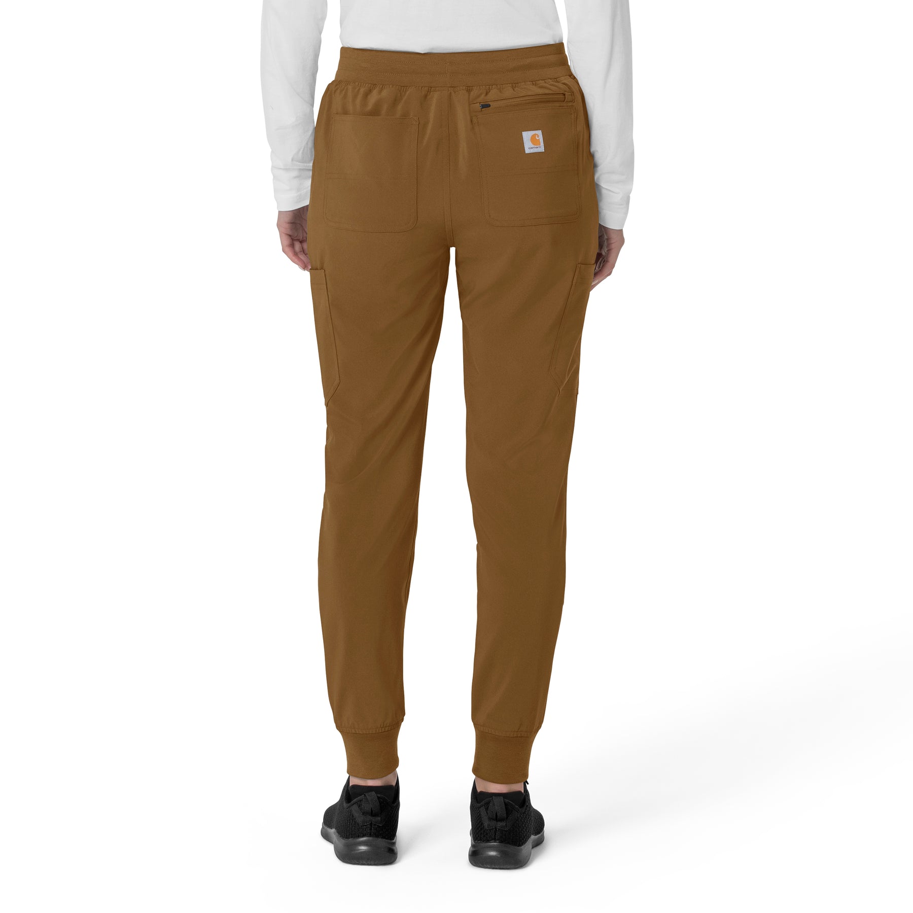 The Carhartt Women's Cargo Jogger Scrub Pant – your dependable partner for demanding days in the medical field. Crafted from a durable and comfortable polyester spandex blend, these pants offer the flexibility you need to handle any task with ease. Whether you're pushing carts, adjusting equipment, or attending to patients, the built-in flex ensures you move freely and comfortably. The rib-knit comfort waistband with elastic and a full drawstring ensures a secure, no-pinch fit that won't dig in during long shifts. These jogger-style scrub pants feature a rib-knit cuff at the bottom for a stylish and secure fit. Stay organized with multiple pockets, including deep front slash pockets, cargo pockets with pen and cell phone slots, Carhartt-style back pockets, and a secure zip pocket with a mesh pocket bag. Your essentials are always within reach. With FastDry® technology to keep you cool and dry and Rugged Flex™ stretch technology for unrestricted movement, these scrubs from the Force Cross-Flex collection are designed to help you excel on every shift. Trust Carhartt for the durability and comfort you need in your medical uniform.