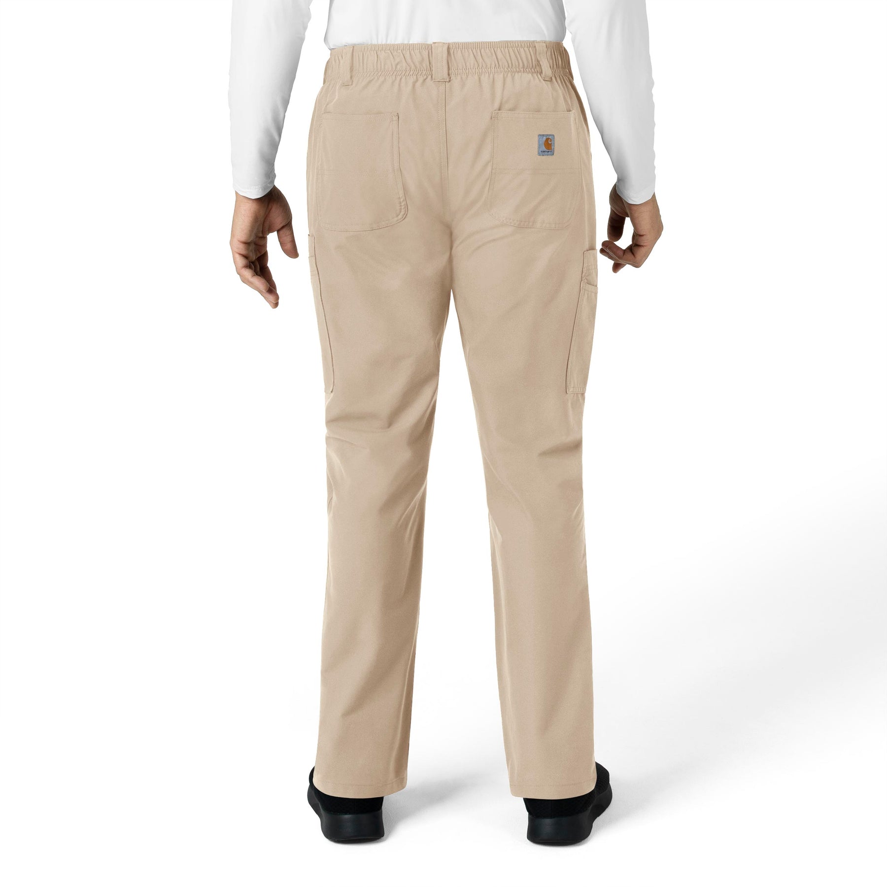 • Feature 2: Two front slash pockets with inset connection, triple cargo pocket at wearer's right with angled top accessory pocket and pen holder, an additional cargo pocket on wearer's left and two back patch pockets, one with the classic Carhartt logo patch centered