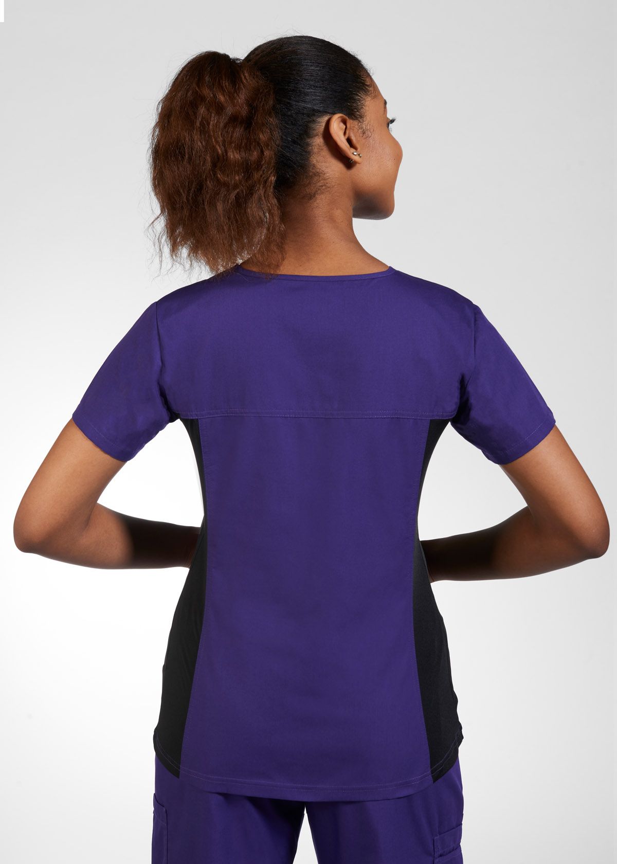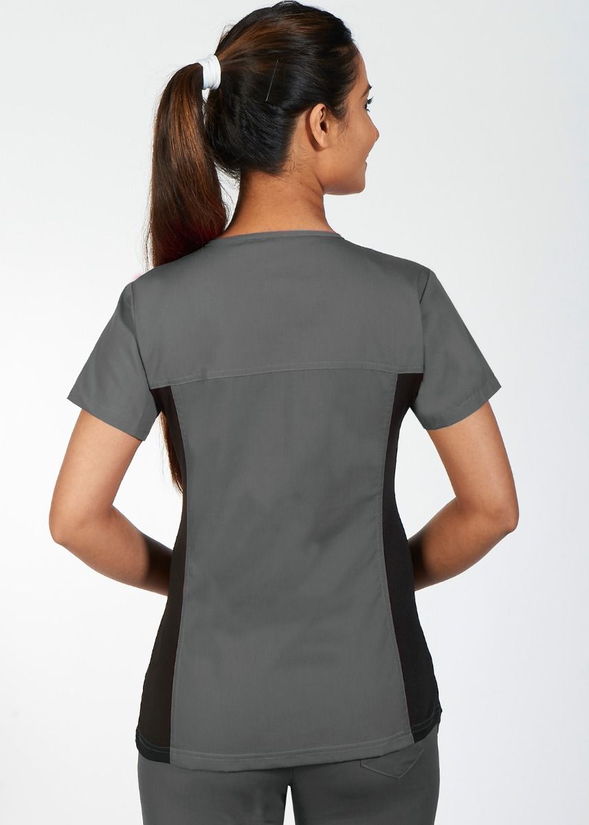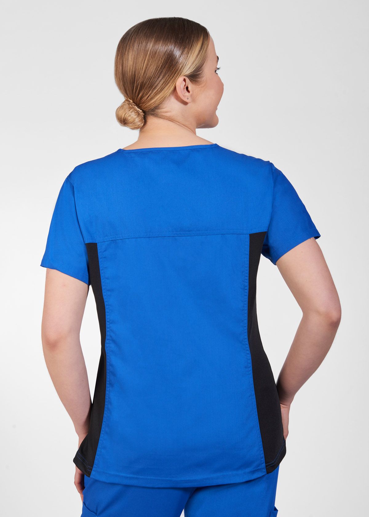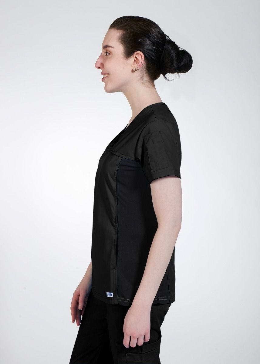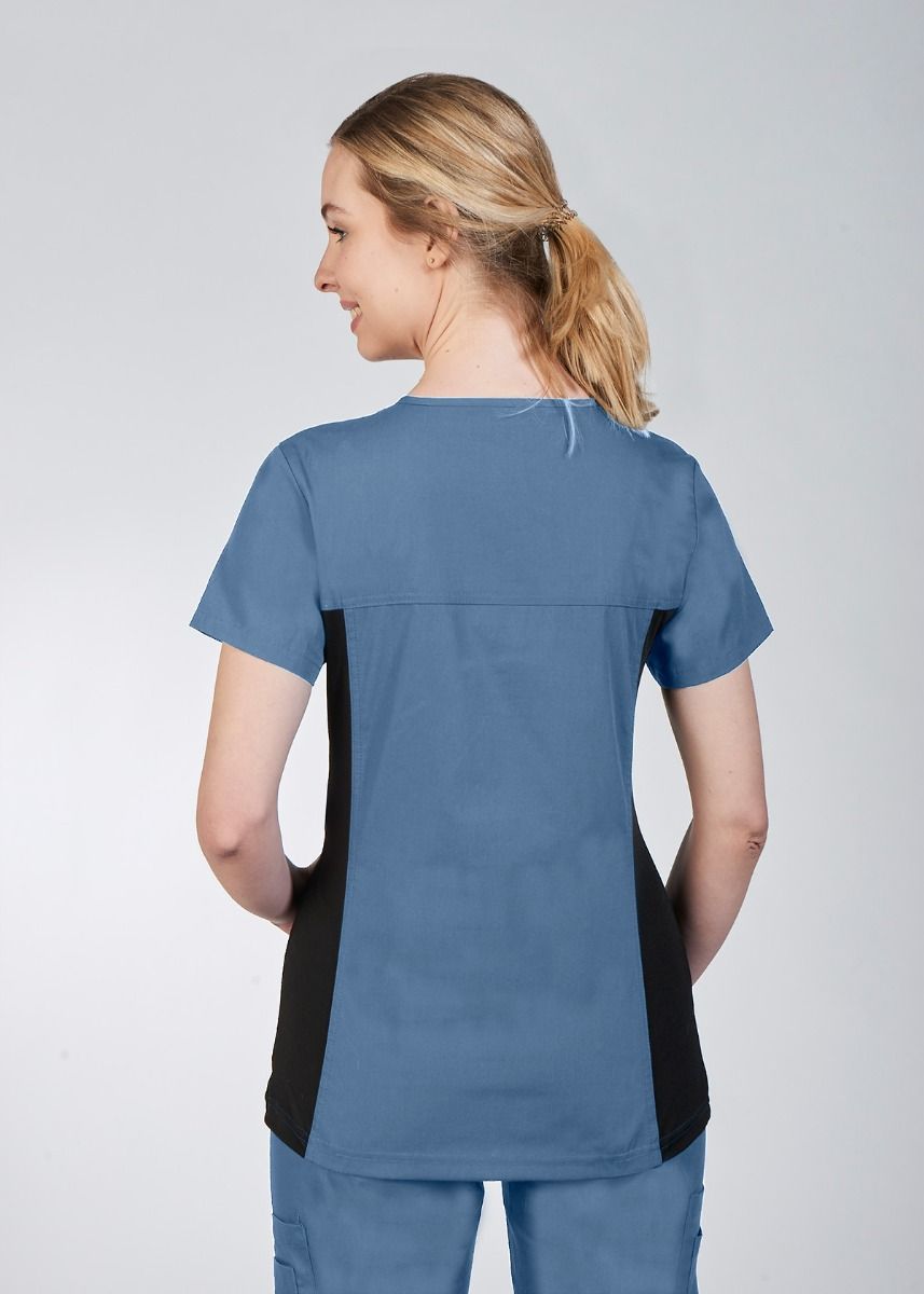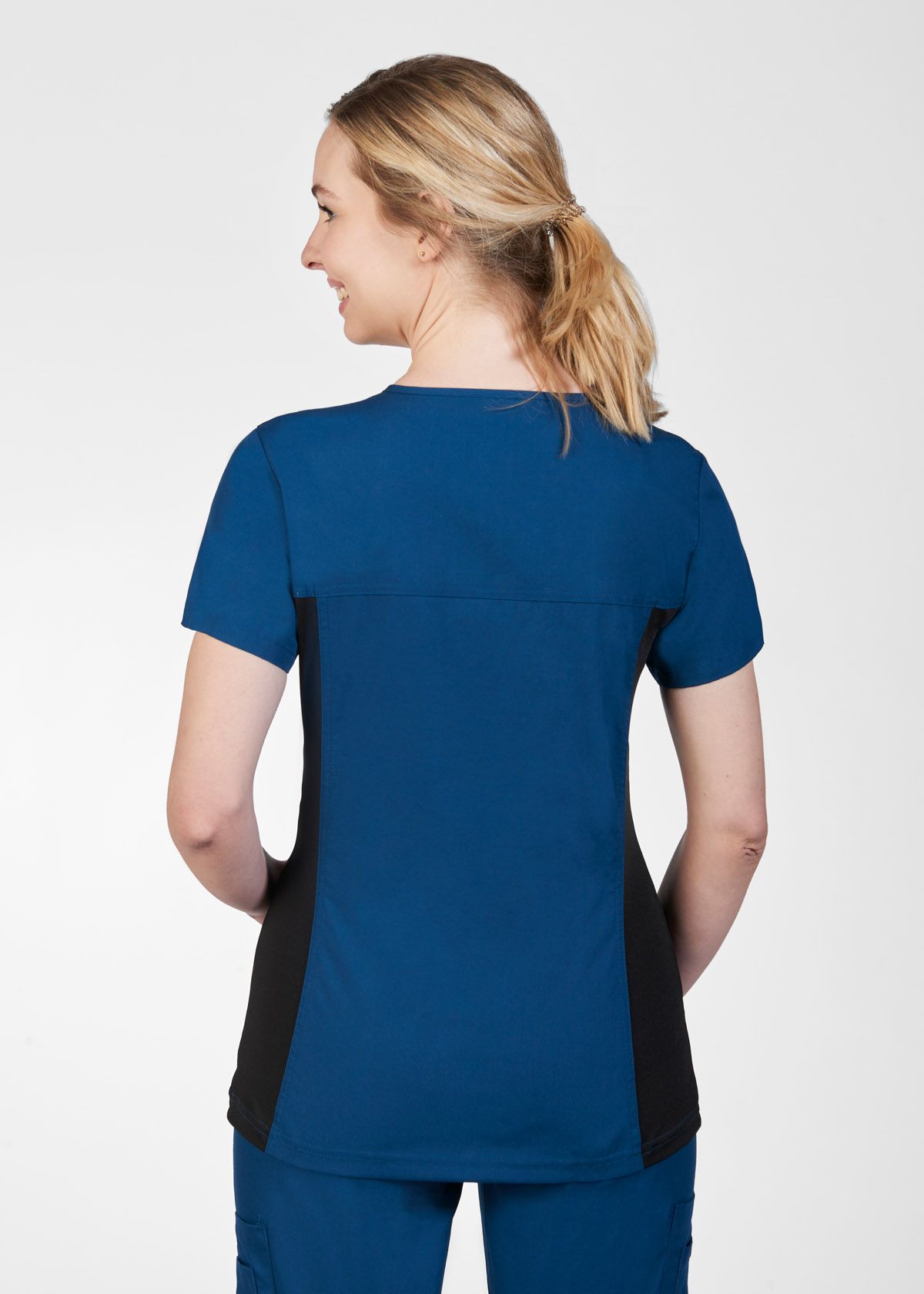 The original MOBB Flexi features our classic v-neck collar and stretch side panels. This top has two lower hidden pockets and one shoulder pen pocket. This top is available in both prints and solids.