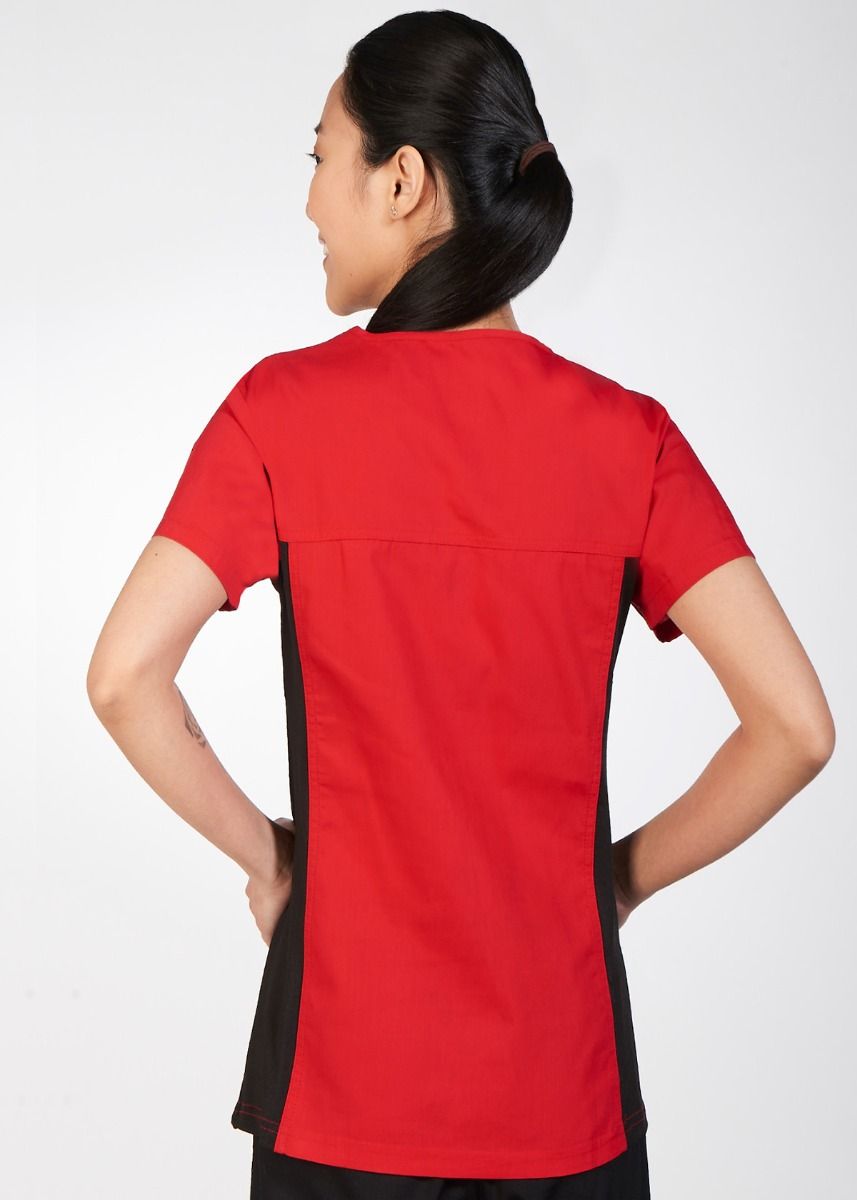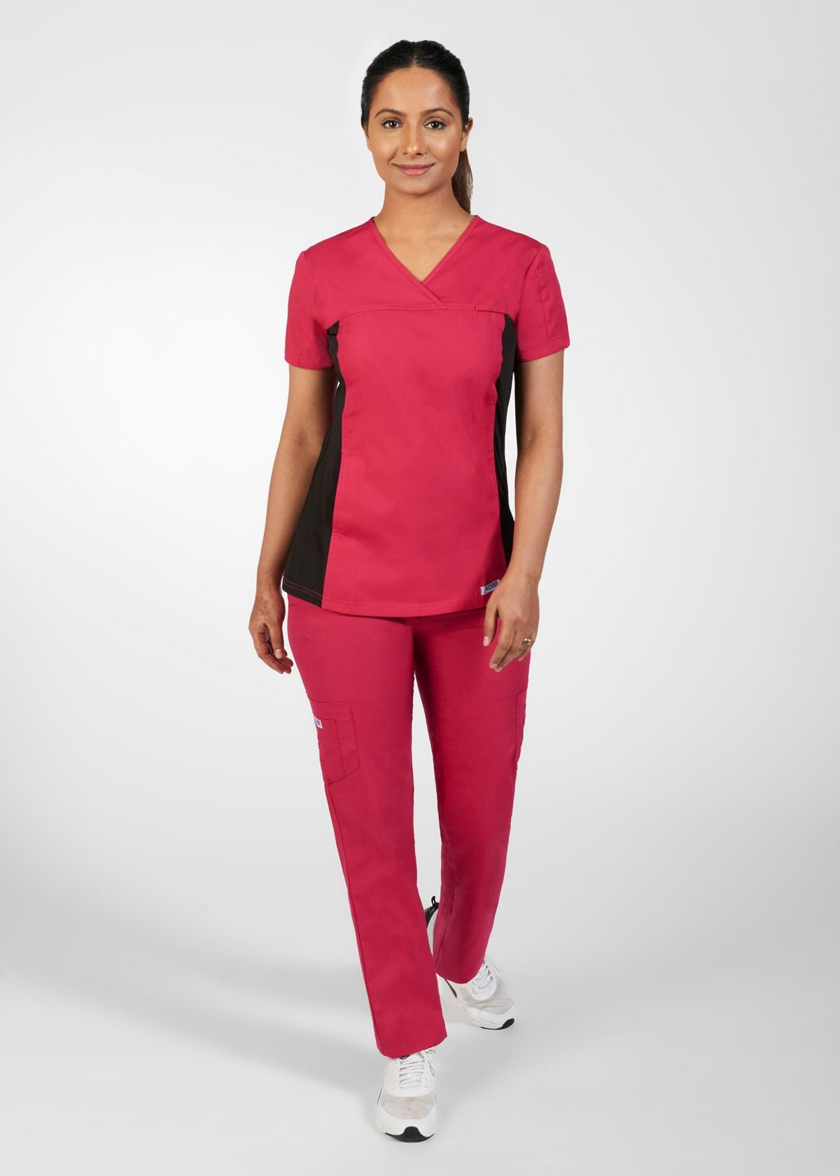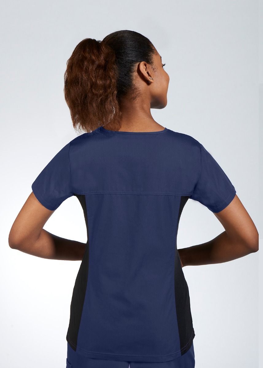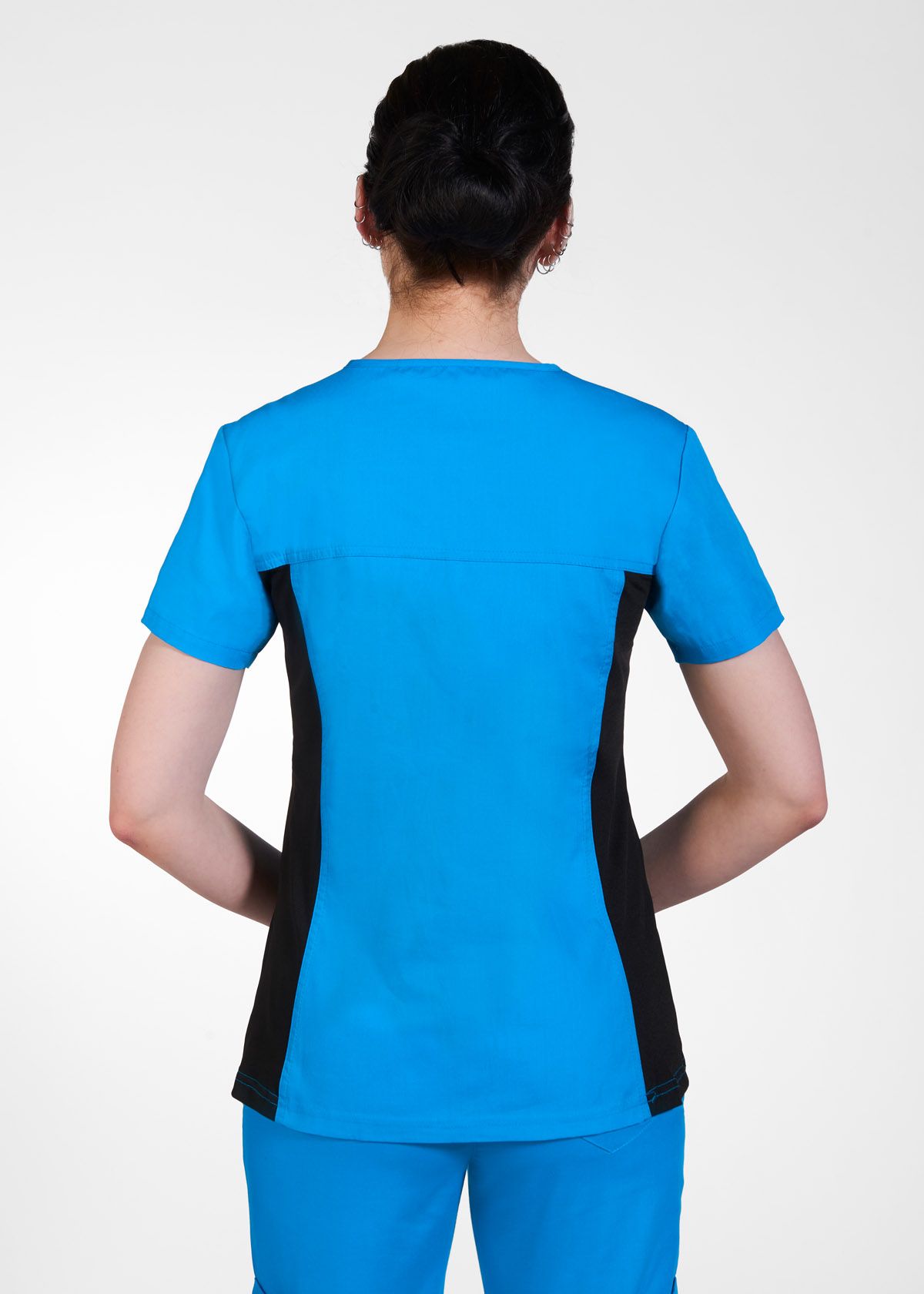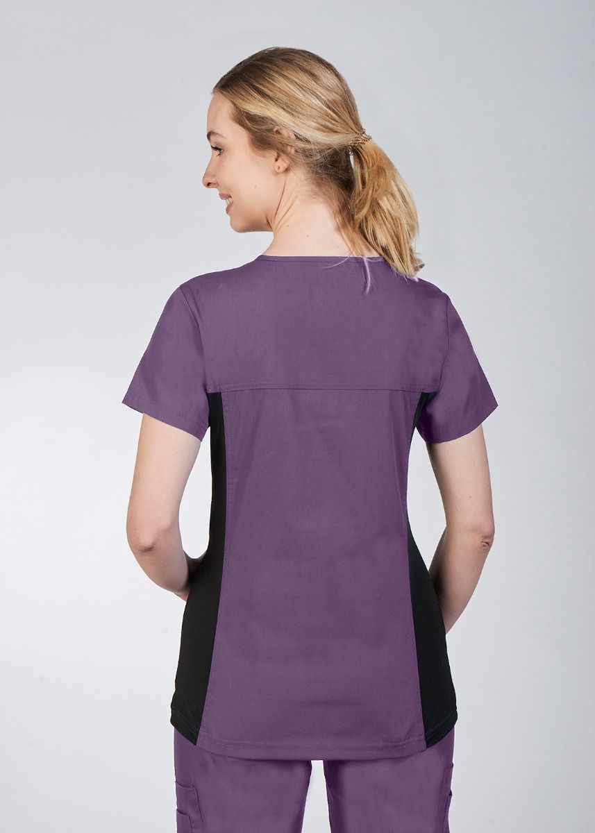 The original MOBB Flexi features our classic v-neck collar and stretch side panels. This top has two lower hidden pockets and one shoulder pen pocket. This top is available in both prints and solids.