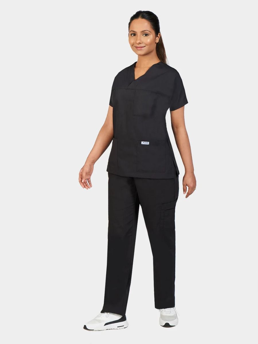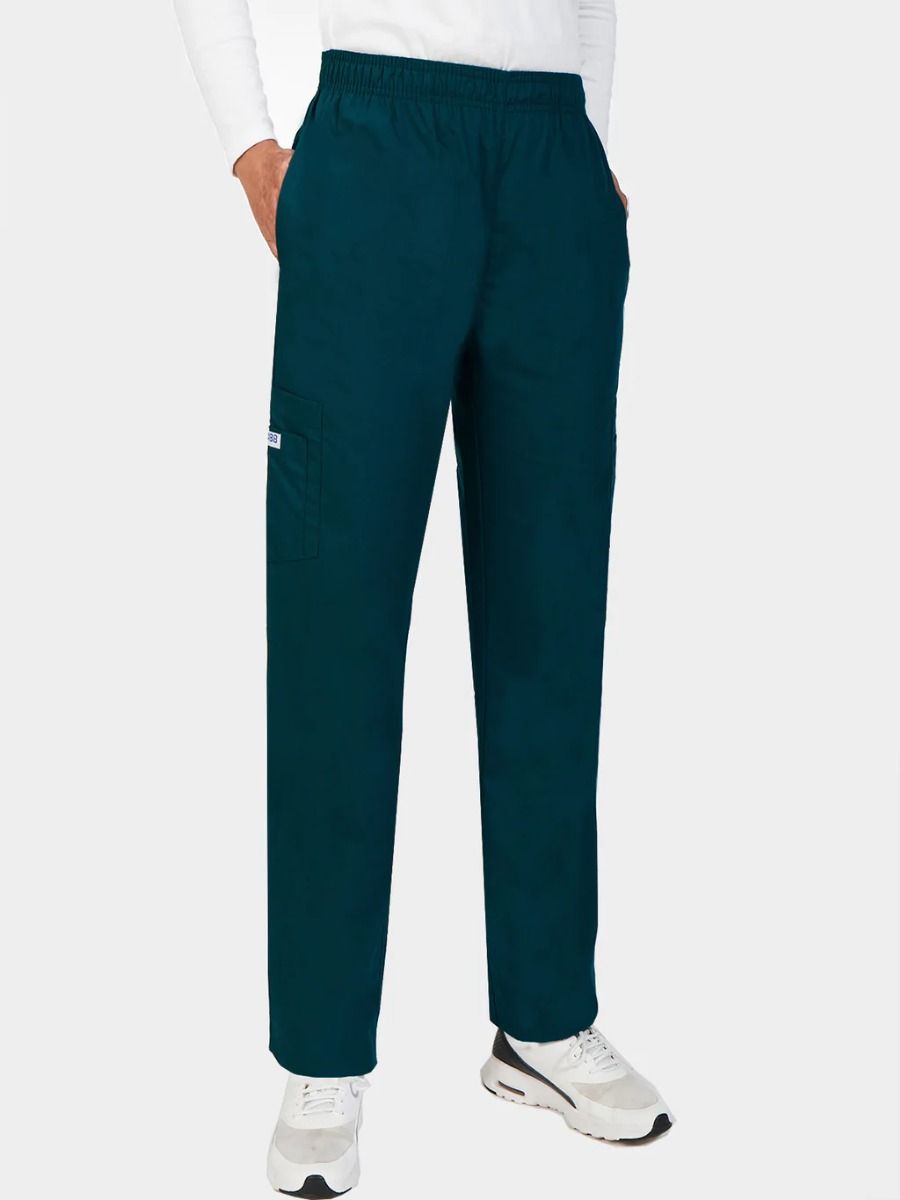 This pant is available in every MOBB color. The unisex style is made to fit everyone looking for a sensible scrub pant. Features a combination drawstring and elastic waistband and a slim cut ankle.