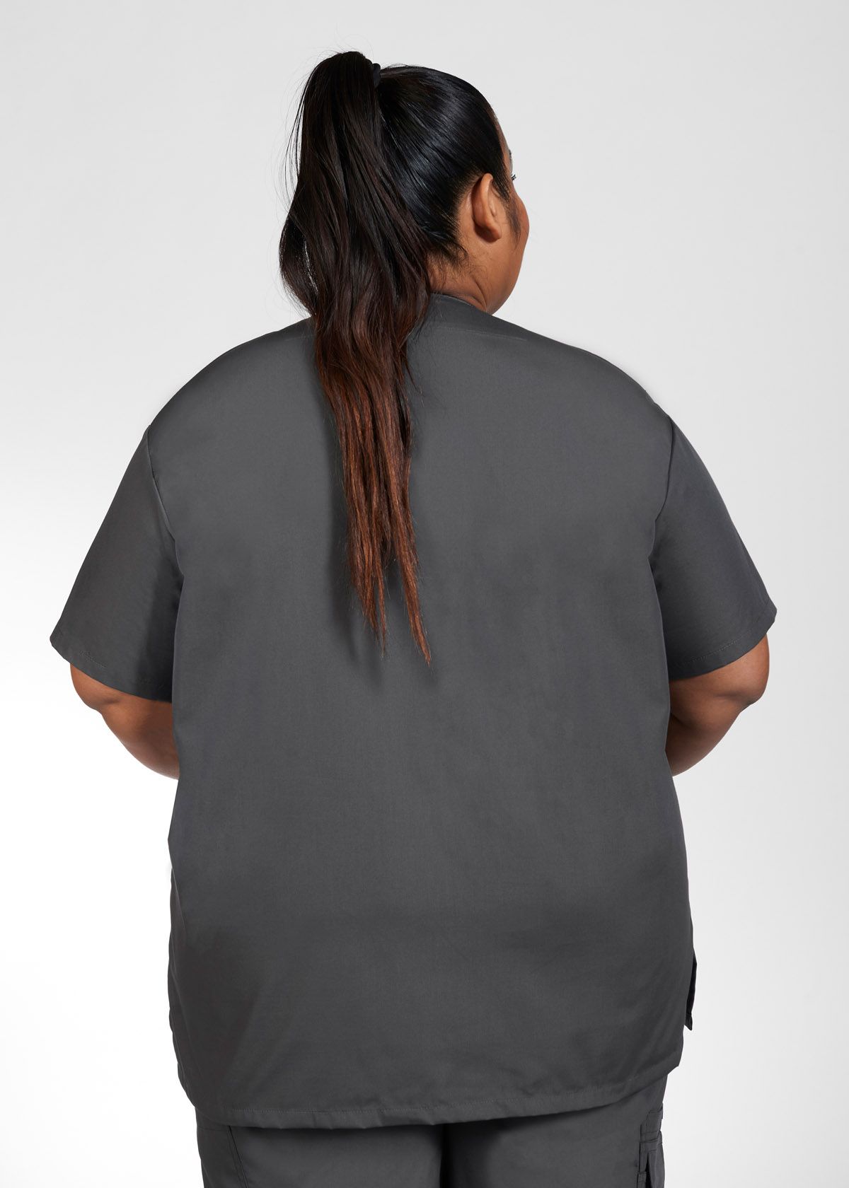 A classic v-neck scrub top popular among men and women. This top has a slightly longer hem line making it an excellent choice for anyone with a taller stature. This top has three front pockets, one shoulder pen pocket and is available in every MOBB color.