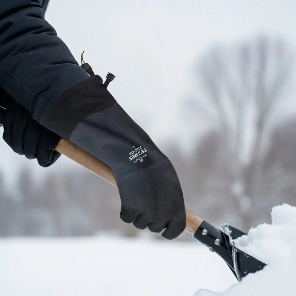 Its extended cuff with drawcord and side release buckle keep forearms protected from the cold and other hazards.