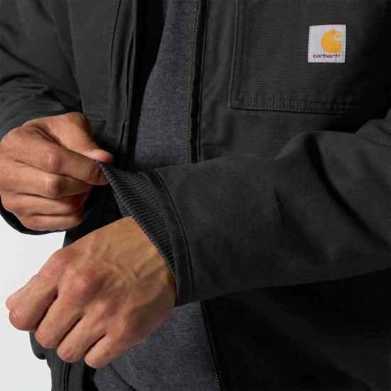 Insulated for warmth and broken in for easy movement, this men's Carhartt duck active jac is made for long work days in cold, windy weather. The 12-ounce canvas with reinforced cuffs delivers hard-wearing durability. Generous insulation throughout seals in warmth. A loose fit allows for easy layering and movement.