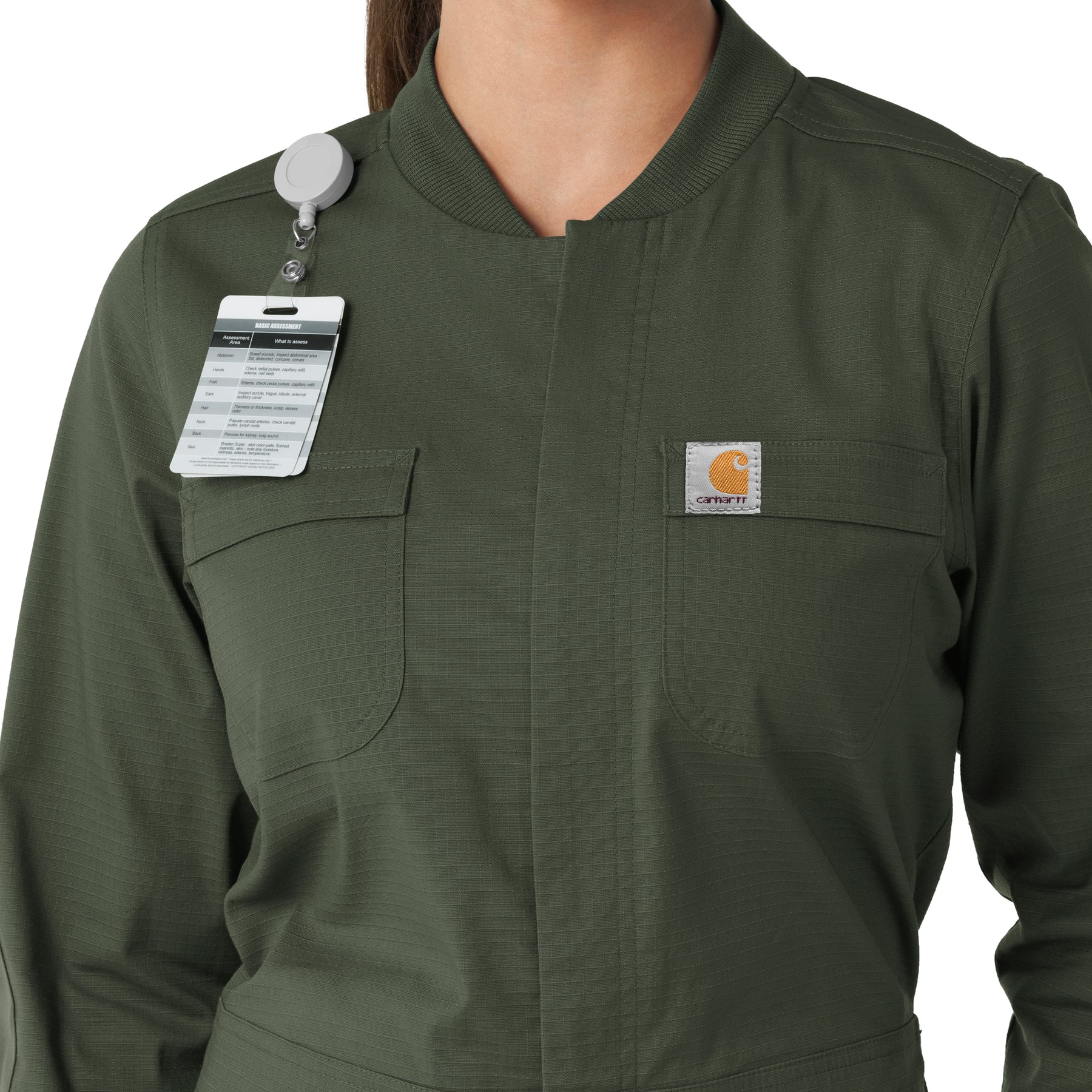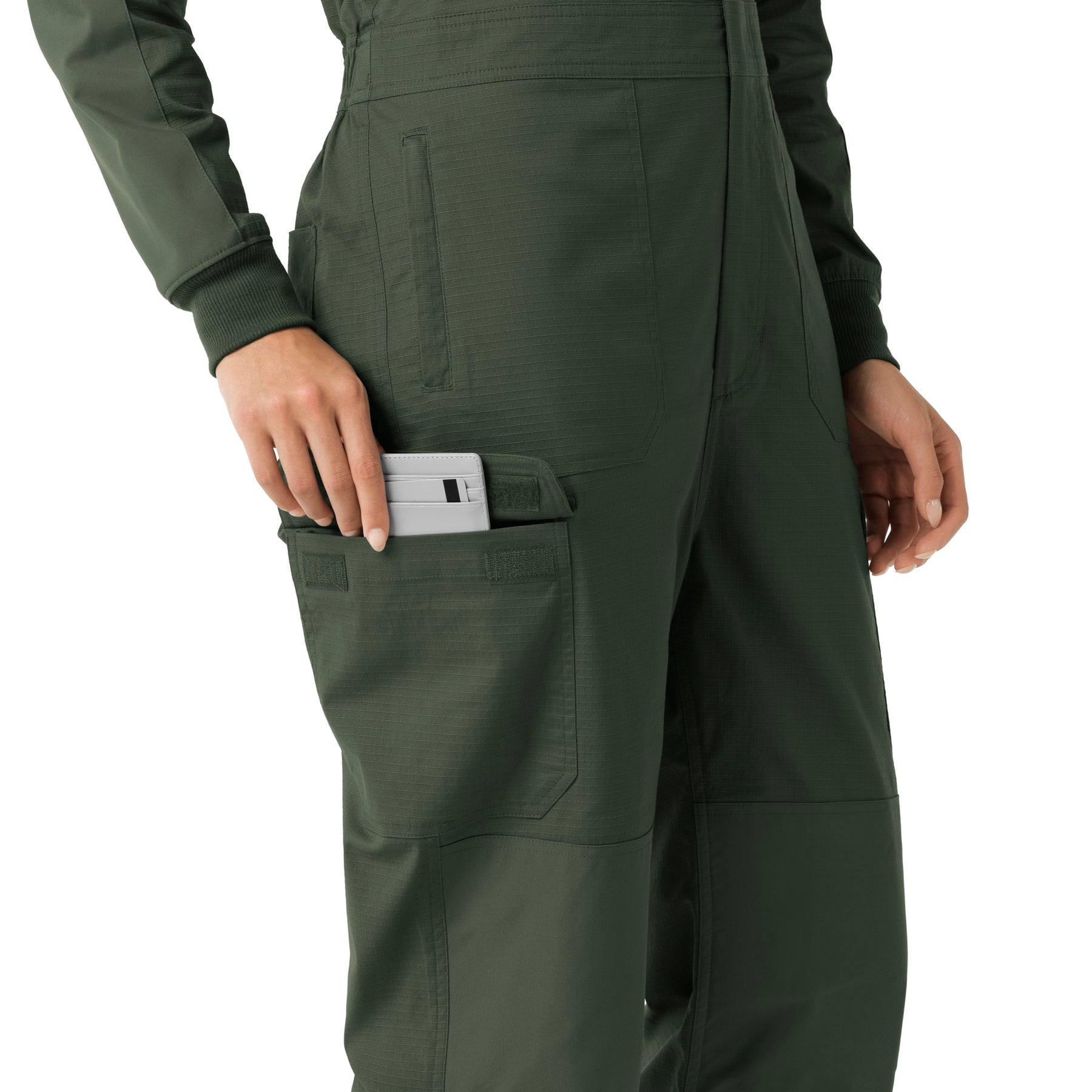 When your work takes you outdoors and into demanding environments, these women's coveralls provide the reliable protection you need to get the job done. Built to withstand the elements and the rigors of physical work, they're crafted from tough yet stretchy Rugged Flex™ ripstop fabric with a Durable Water Repellent (DWR) coating. This combination ensures exceptional durability, flexibility, and protection against moisture, keeping you dry and comfortable in a variety of conditions. Functionality is paramount, and these coveralls are outfitted with a total of 11 pockets, strategically placed to provide ample storage for tools, equipment, and personal items. Whether you need to carry small essentials or larger tools, these pockets ensure everything you need is organized and within reach. Reinforced elbow and knee panels provide added durability and protection in high-wear areas, increasing the lifespan of the garment and enhancing your comfort during demanding tasks. With their combination of durable construction, thoughtful design, and practical features, they're a valuable asset for any professional who faces the elements head-on.