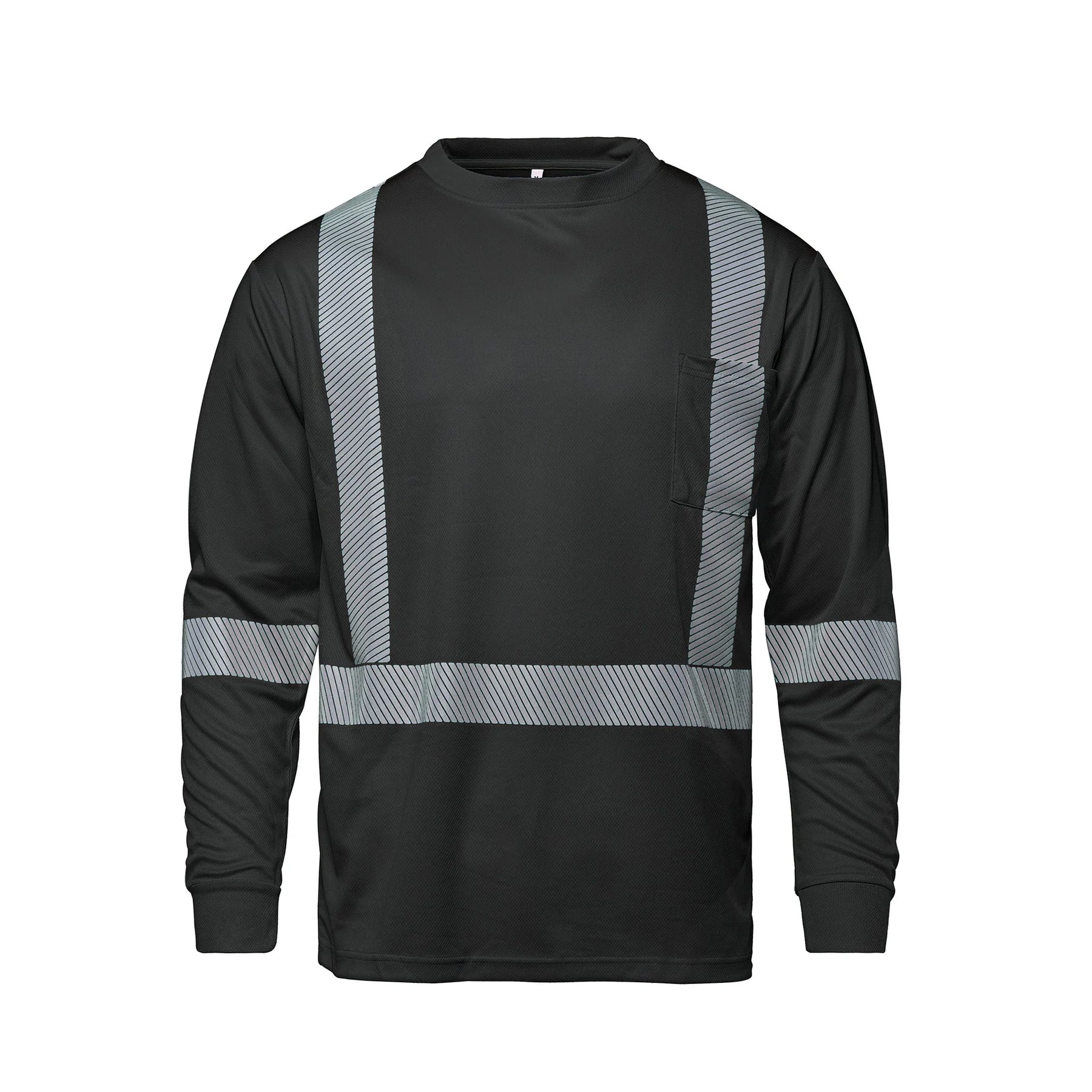 130 gsm – 3.8 oz./yd² – 6.5 oz./lin. yd 100% polyester birdseye mesh with wicking finish and UPF 50+ rated sun protection. Rib knit neckline and cuff. Chest pocket. 2” retroreflective stripe on front and back body and sleeves – segmented stripes for added flexibility. Meets CSA standards.